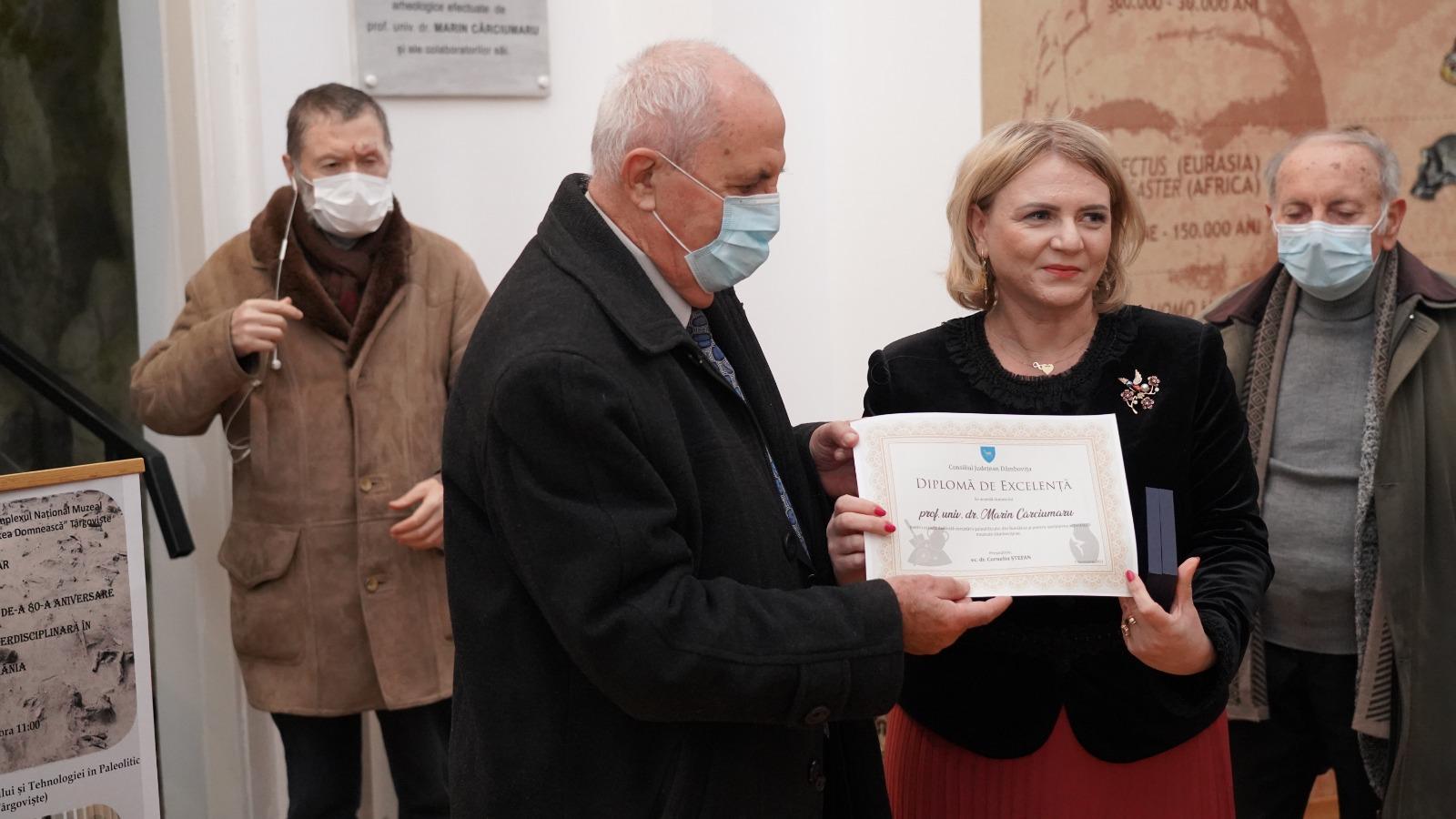 Cu acest prilej, Consiliul Județean Dâmbovița i-a acordat profesorului Marin Cârciumaru o diplomă de excelență pentru cariera dedicată cercetării paleoliticului din România și pentru sprijinirea activității muzeale dâmbovițene, distincție ce i-a fost înmânată de conf. univ. dr. Claudia Gilia, consilier al președintelui CJD, Corneliu Ștefan.