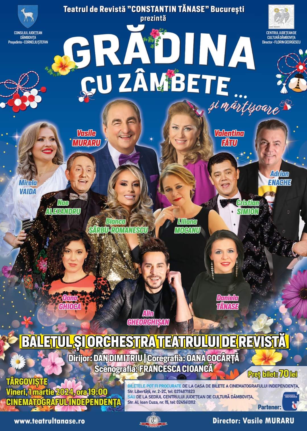 Teatrul de Revistă „Constantin Tănase” din București va susține, anul acesta, spectacolul „Grădina cu zâmbete… și mărțișoare”, eveniment ce debutează la ora 19:00, vineri, 1 martie.