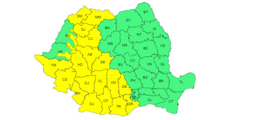 În Banat, Oltenia, Maramureș, vestul Transilvaniei și al Munteniei, precum și în zona Carpaților Occidentali, vor fi perioade cu instabilitate atmosferică accentuată care se va manifesta prin averse torențiale, descărcări electrice, intensificări ale vântului și izolat grindină. În intervale scurte de timp sau prin acumulare cantitățile de apă vor fi de 25…30 l/mp și izolat de peste 40 l/mp.
