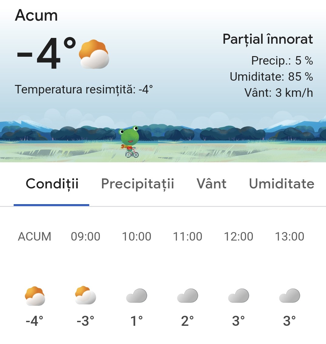 Miercuri, 26 februarie 2025, Târgoviște are o dimineață rece, cu temperaturi negative. Deși dimineața este ger, se așteaptă ca vremea să se încălzească pe parcursul zilei. Cerul va fi variabil, cu nebulozitate joasă, iar în a doua parte a zilei există posibilitatea de ceață pe arii restrânse în regiunile extracarpatice.