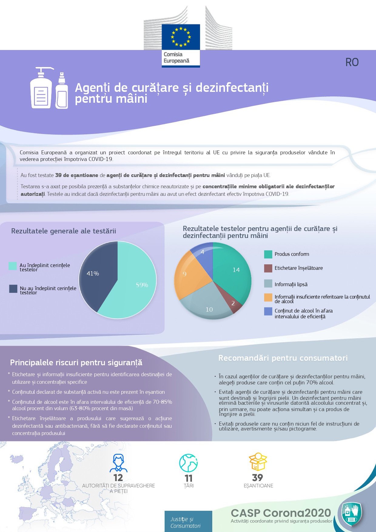 Acțiunea „CASP Corona 2020„ și-a propus să abordeze pericolele identificate într-un mod coordonat printr-o activitate de testare comună și să utilizeze rezultatele pentru o comunicare direcționată către consumatorii europeni, cu un accent special pe sfaturi pentru consumatorii care cumpără aceste tipuri de produse.