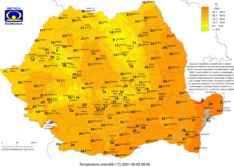 situa între 37 şi 40 de grade, iar în sudul Munteniei se vor atinge 41 de grade.