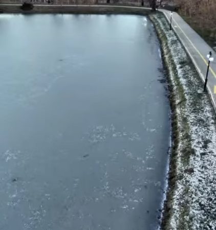 În Parcul „Chindia”, temperaturile scăzute din ultimele zile au dus la înghețarea completă a lacului, oferind un peisaj specific sezonului rece. Aleile au fost aproape pustii, iar copacii desfrunziți, acoperiți de chiciură, au accentuat liniștea parcului.
