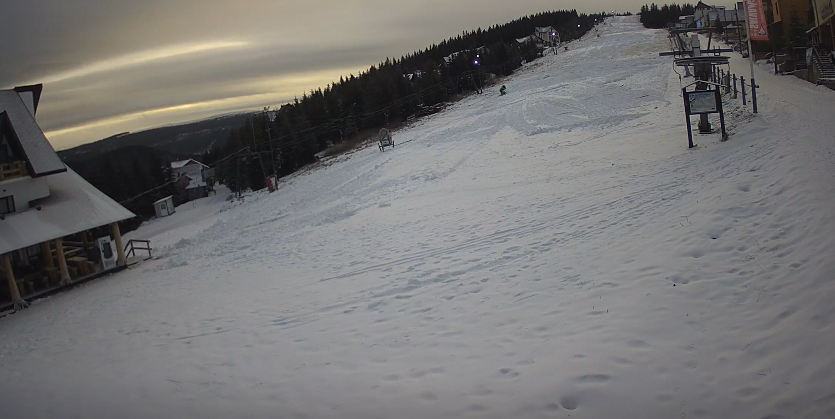Imaginile dimineții, vezi unde ninge, încă de la primele ore , fulgii de nea și-au făcut apariția la Cota 1400 din Sinaia, pârtia Valea cu Brazi.