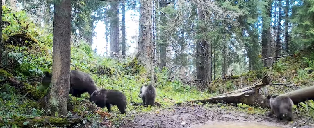 O ursoaică și cei trei pui ai săi au fost surprinși recent în Parcul Natural Apuseni, oferind o priveliște rară și spectaculoasă a vieții sălbatice.