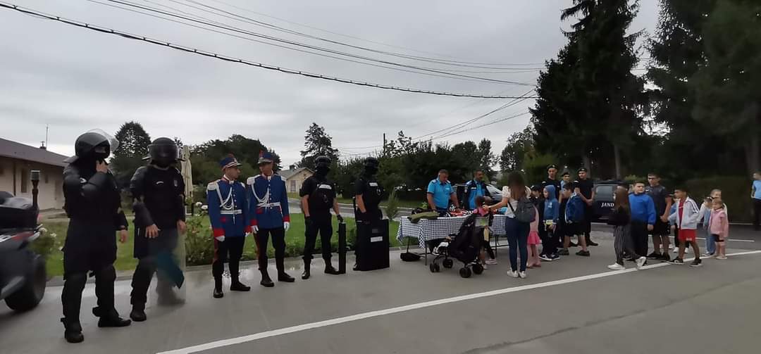 Copiii cu vârste între 5 și 12 ani au putut vizualiza standuri expoziționale referitoare la: materialele de protecție individuală și intervenție utilizate de jandarmi în diferite misiuni, o parte dintre autovehiculele aflate în dotarea inspectoratului, câinii de serviciu folosiți de jandarmi în misiuni, precum și echipamentul specific al jandarmilor montani.