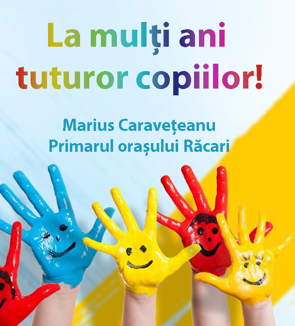 Primarul orașului Răcari, Marius Caravețeanu transmite un mesaj tuturor copiilor, cu ocazia Zilei Internaționale a Copilului.