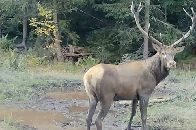 O cameră de monitorizare instalată într-o pădure administrată de Direcția Silvică Suceava, a surprins un cerb aflat în perioada de boncănit, oferind un adevărat spectacol al naturii.