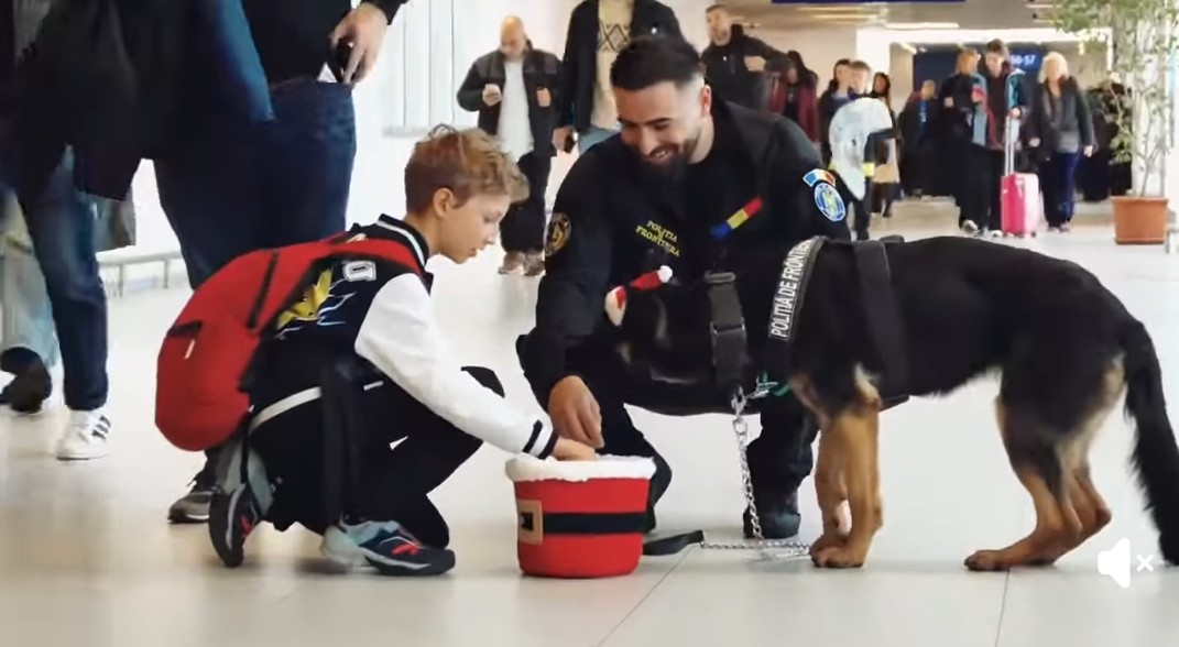 În prag de sărbători, echipa Poliției de Frontieră a desfășurat o misiune cu totul specială la Aeroportul Internațional Henri Coandă. Cu ocazia sărbătorii de Moș Nicolae, micii călători au avut parte de o surpriză neașteptată: au fost întâmpinați cu dulciuri și urări calde de la oamenii legii, alături de un ajutor cu patru labe – câinele polițist Ebasa.