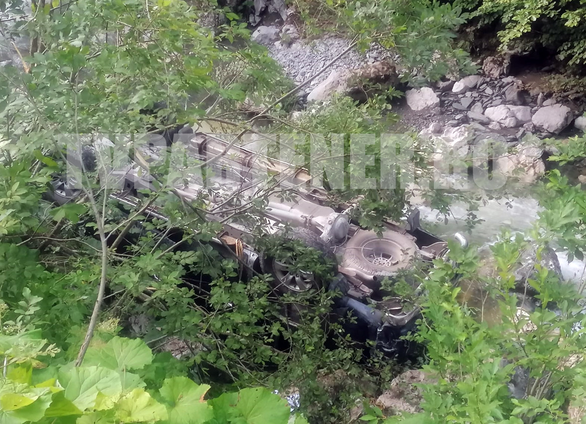 Au căzut cu jeep-ul într-o râpă adâncă de 30 de metri de pe Valea Brăteiului, DJ 714A, Moroeni – Pucheni – Valea Brăteiului.