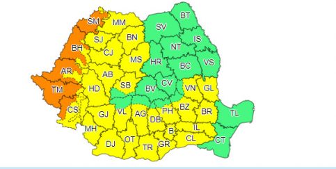 AVERTIZARE METEOROLOGICĂ, COD GALBEN de caniculă în zilele de 13 și 14 iulie 2021, potrivit ANMH.
