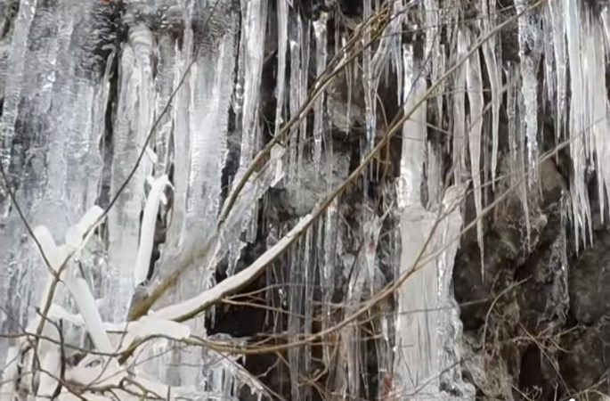 Un spectaculos candelabru de gheață a fost surprins pe traseul turistic spre Cascada Lotrișor, oferind un peisaj de poveste în inima Parcului Național Cozia.