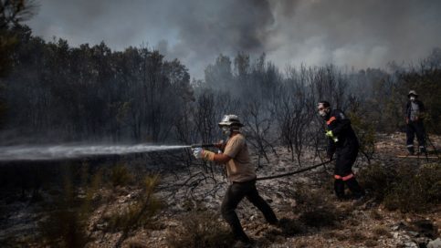 Incendiile din Grecia par de nestăvilit. Sunt 154 de focare active acum pe tot teritoriul elen. Doi oameni – un pompier și un voluntar – au murit și alți cel puțin 16 au fost răniți în lupta cu flăcările. Cele mai grave situații sunt în nordul Atenei și pe insula Evia, a doua ca mărime din arhipelag, și unde s-a dat ordin de evacuare în trei localități. Din una dintre ele, Limni, 500 de oameni au plecat cu feribotul, deoarece toate drumurile din jur sunt blocate de foc.