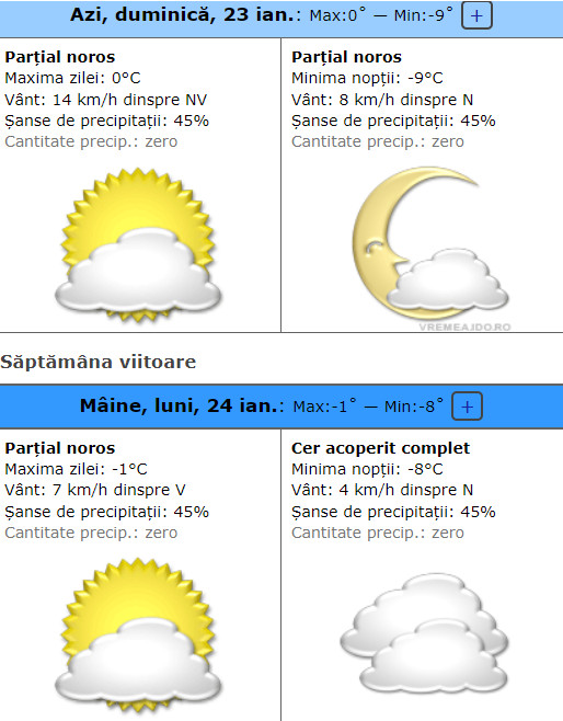 Meteorologii anunță o vreme rece în majoritatea zonelor țării, dimineața și noaptea, vremea va fi deosebit de geroasă, cerul va avea înnorări persistente în est şi la munte, şi temporare în restul teritoriului.