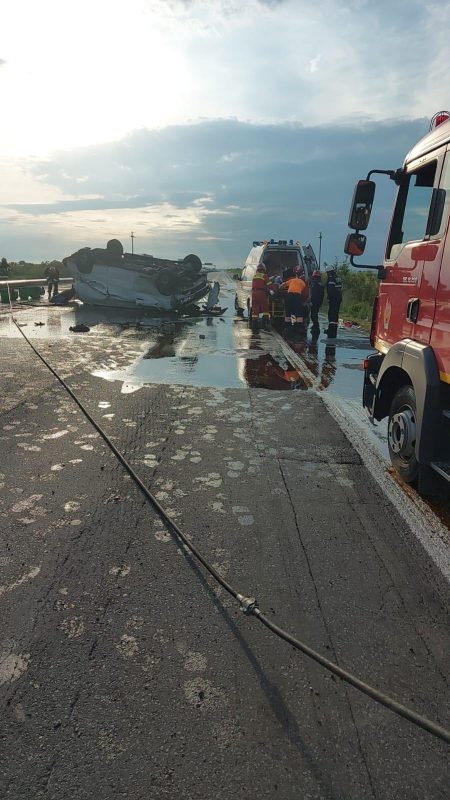 La locul accidentului, pompierii au identificat două victime care se aflau într-un autovehicul care transporta ulei uzat. Dintre victime una este în stare gravă, conștientă, cu traumatisme la nivelul coloanei cervicale, pentru aceasta fiind solicitată intervenția elicopterului SMURD.
