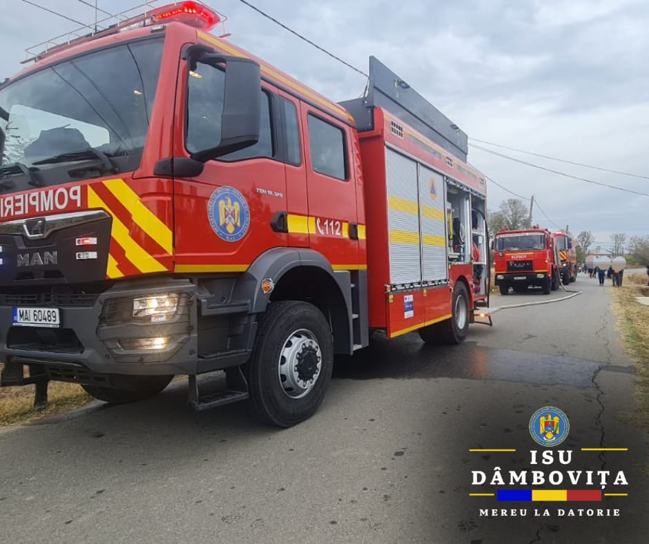 O casă a fost mistuită de flăcări în comuna Uliești, sat Hanul lui Pală, au intervenit pompierii de la Garda de Intervenție Vișina cu două autospeciale de stingere cu apă și spumă și Detașamentul Găești cu o autospecială de stingere cu apă și spumă.