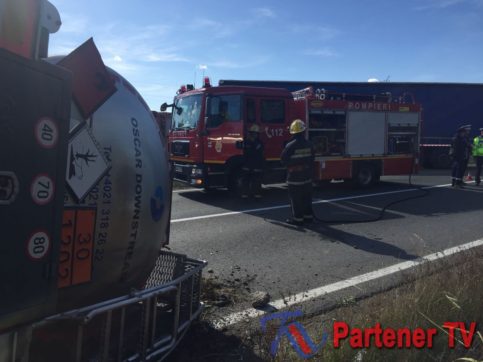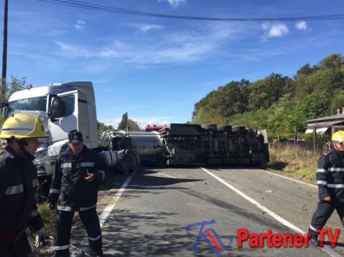 O cisternă plină cu motorină s-a răsturnat pe DN 72 în comuna dâmboviţeană I.L. Caragiale.