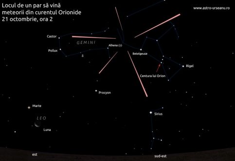 Ploaia meteorică Orionide , 21, 22 octombrie, reprezintă un curent mediu ca intensitate care produce până la 20 de meteori pe oră la vârf.