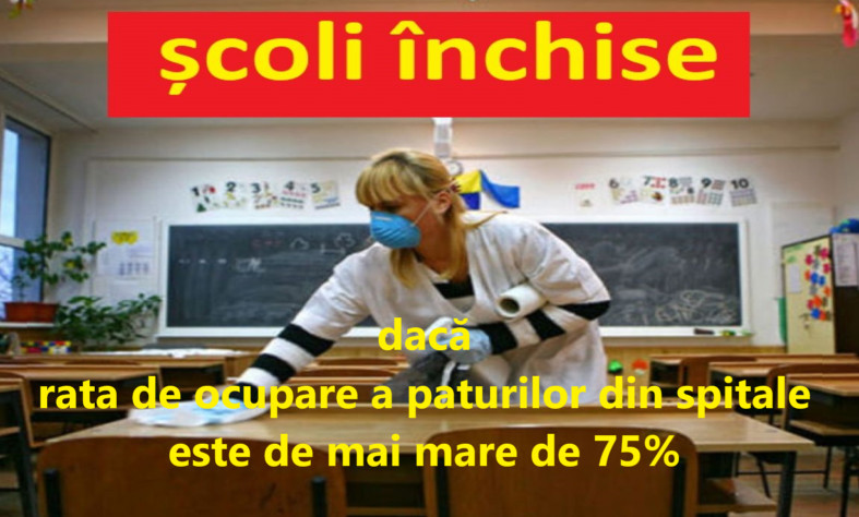 - Revenirea la școală cu prezență fizică numai după ce rata de ocupare scade sub 70% la nivel județean.