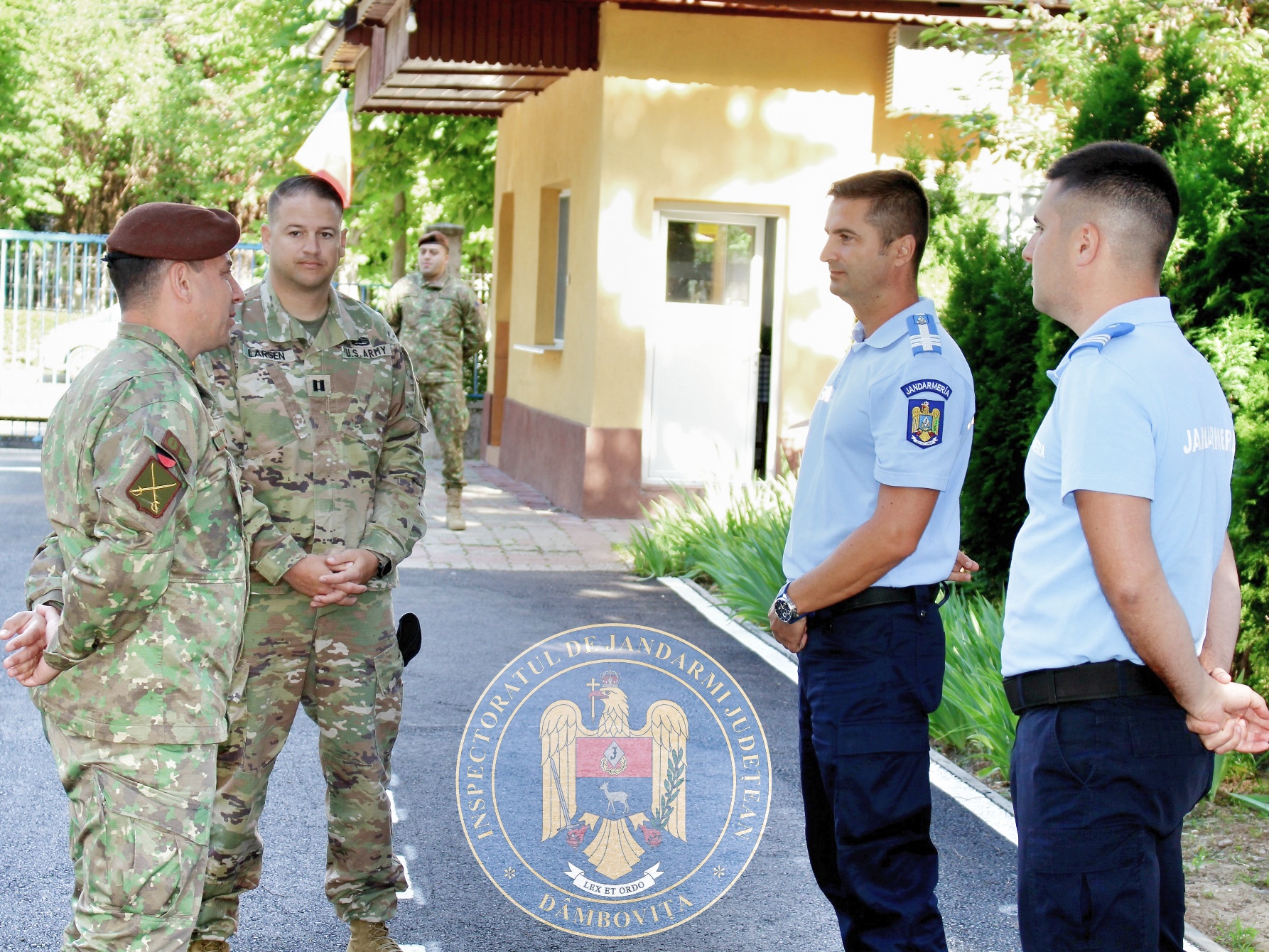 O delegație mixtă formată din specialiști români în domeniul cooperării civil-militare (CIMIC) din cadrul Batalionului 1 CIMIC “General de corp de armată Ștefan Holban” și specialiști americani ai afacerilor civile (US Civil Affairs) a vizitat ieri, 22 iunie a.c., Jandarmeria Dâmbovița.