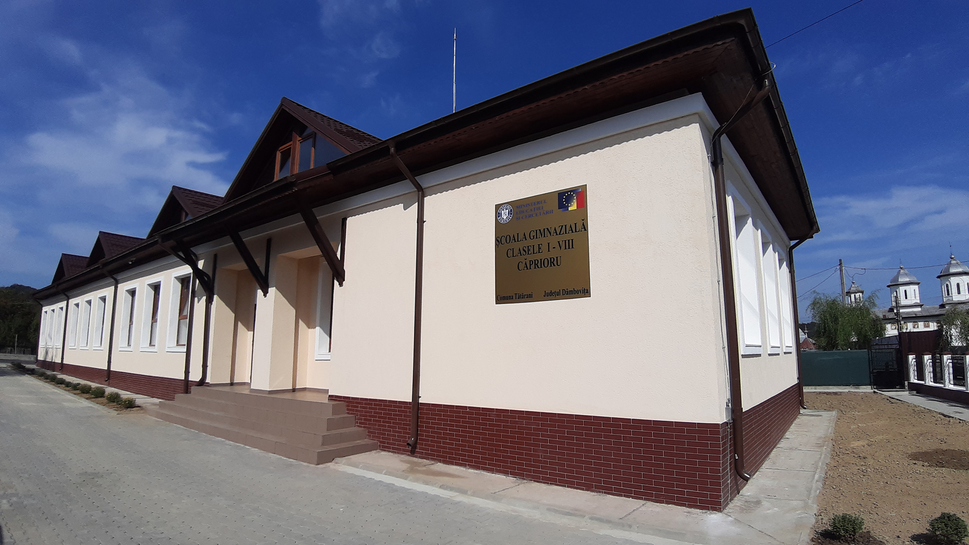 Școala Generală cu clasele I-VIII din satul Căprioru își așteaptă, în noul an școlar, elevii și profesorii cu săli de clasă moderne, colorate și care să le asigure acestora tot confortul pe parcursul orelor. De la grupurile sanitare, la holuri și până la terenul de sport, totul arată impecabil.