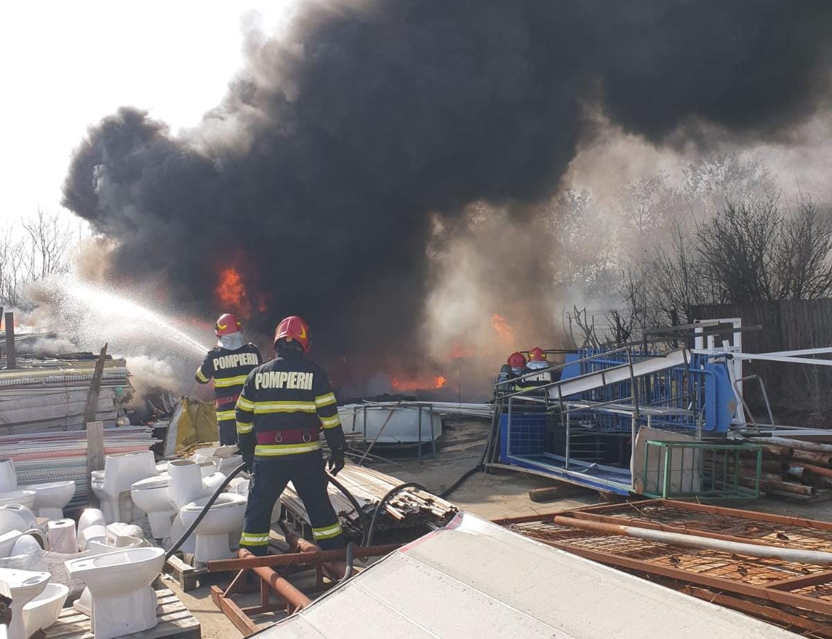Au ars aproximativ 10 tone de deșeuri plastice. Pompierii târgovișteni au intervenit cu două autospeciale pentru stingerea focului care s-a extins cu repeziciune.
