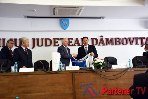 Delegaţia chineză a fost primită de Preşedintele Consiliului Judeţean Dâmboviţa, Adrian Ţuţuianu, Vicepreşedinţii Alexandru Oprea şi Corneliu Ştefan, precum şi de Secretarul Judeţului, Ivan Vasile Ivanoff. De asemenea, la întâlnire au mai luat parte subprefectul Judeţului, Ciprian Păsăilă, primarul Municipiului Târgovişte, Daniel Cristian Stan, primarul oraşului Pucioasa, Constantin Ana, Gheorghe Popescu – directorul filialei judeţene a Crucii Roşii Dâmboviţa, Oana Vlăducă – director cabinet preşedinte, Liviu Stoica – administrator public al Municipiului Târgovişte.