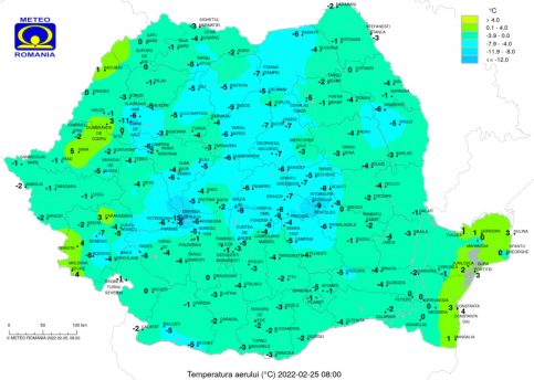 Vântul va sufla slab și moderat, cu unele intensificări pe crestele montane. Temperaturile maxime vor fi între 4 și 13 grade, iar temperaturile minime vor fi între -5 și 5 grade. Izolat se va forma ceață.
