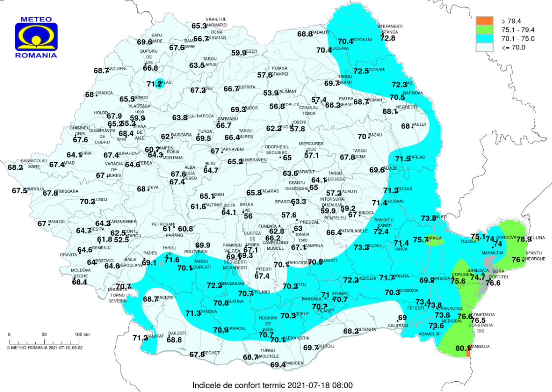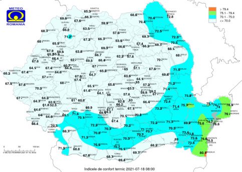 Vremea se menține caniculară va persista, duminică, 18 iulie, valorile termice maxime vor fi de aproximativ 36 de grade. Disconfortul termic va fi ridicat. Indicele temperatură-umezeală va depăși pragul critic de 80 de unități.